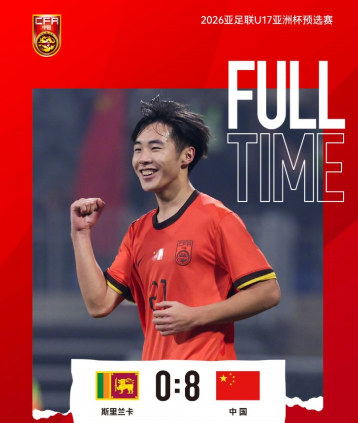 11月28日,在U17亚洲杯预选赛第四轮中,中国U16男足以8:0大胜斯里兰卡U16。同组另一场比赛,孟加拉国U16以2:1击败巴林U16。