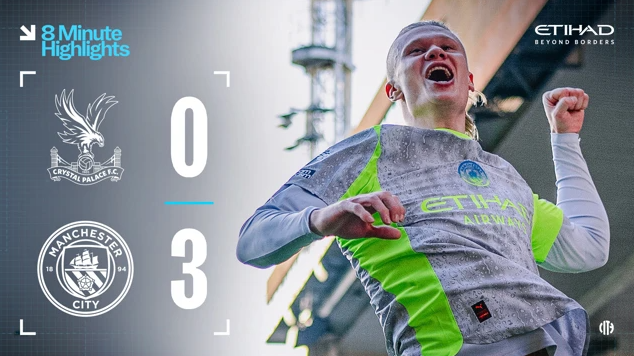 上半场,水晶宫前锋皮诺错失单刀机会,曼城则由福登通过任意球制造威胁。随后哈兰德接应传中头球破门,为球队首开纪录。下半场,水晶宫一度通过曼城后场失误获得良机,但亚当·沃顿的射门击中立柱。曼城随即由福登扩大比分,此后萨维尼奥制造点球,哈兰德主罚命中锁定胜局。