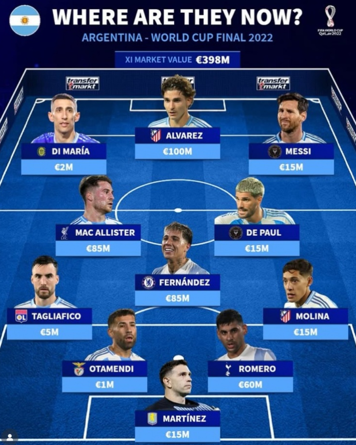 2022世界杯决赛阿根廷首发:当前身价3.98亿欧元