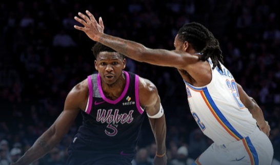12月20日讯 NBA常规赛迎来一场焦点对决,联盟榜首俄克拉荷马雷霆客场挑战明尼苏达森林狼。此役,森林狼核心安东尼·爱德华兹迎来复出。